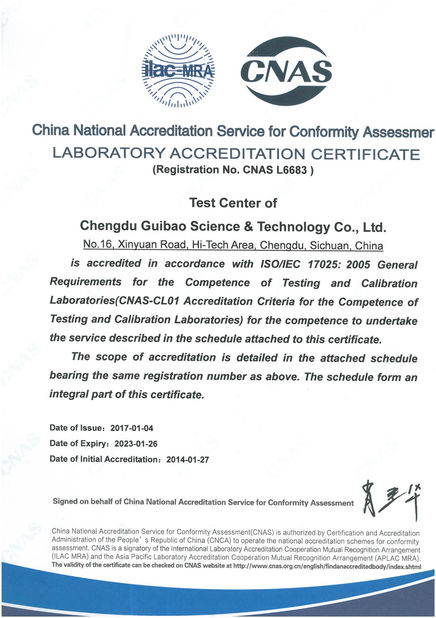 | Norme: | ISO/IEC 17025:2005 /CNAS-CL01 |